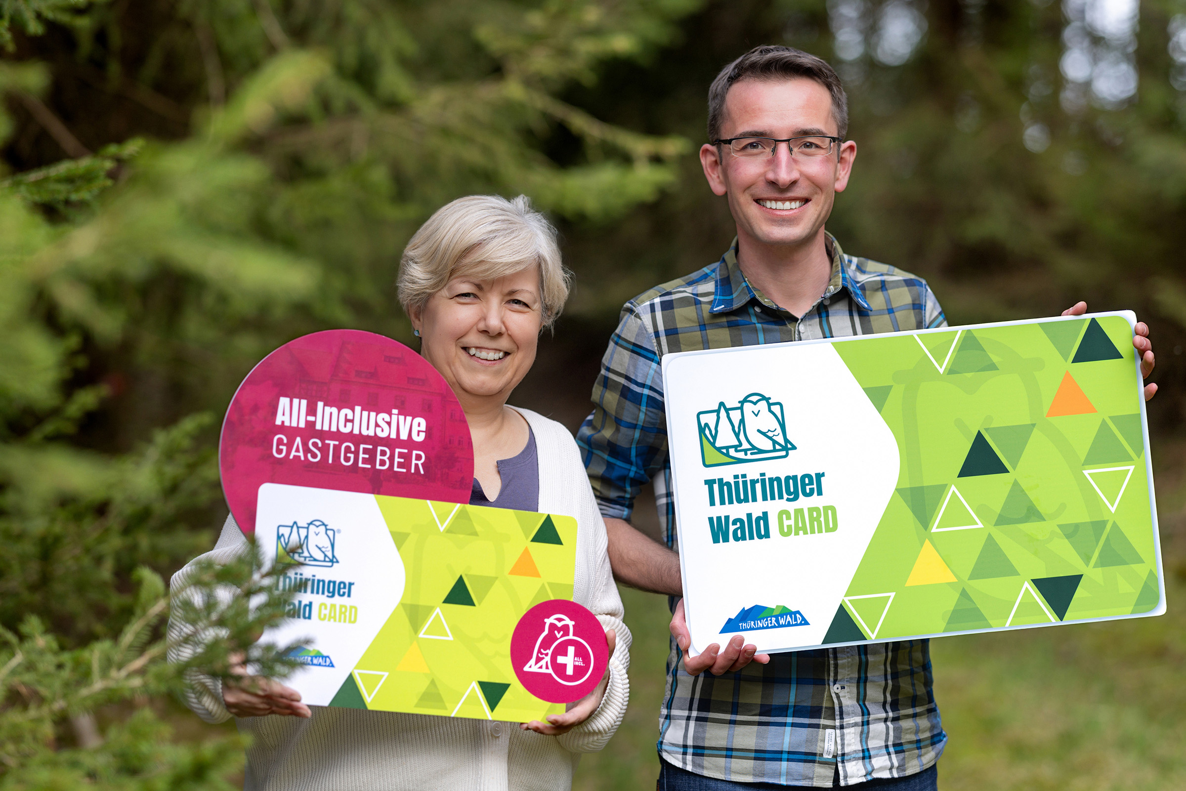 1: Projektverantwortliche Ivonne Hablitzel und Holger Jakob mit der Thüringer Wald Card