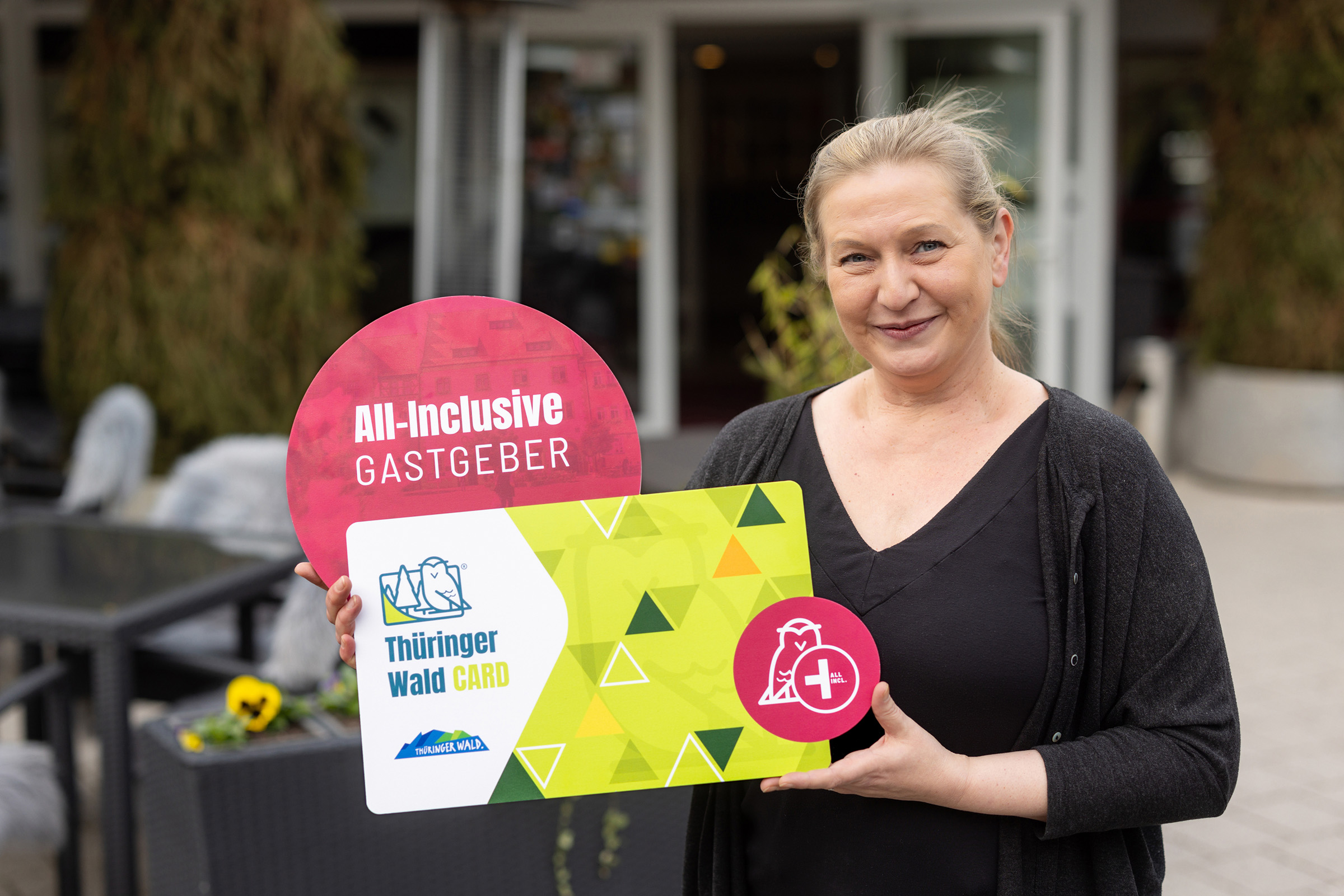 3: Kathleen Bergert-Höhn vom Waldhotel Rennsteighöhe und Holger Jakob von der Thüringer Wald Card
