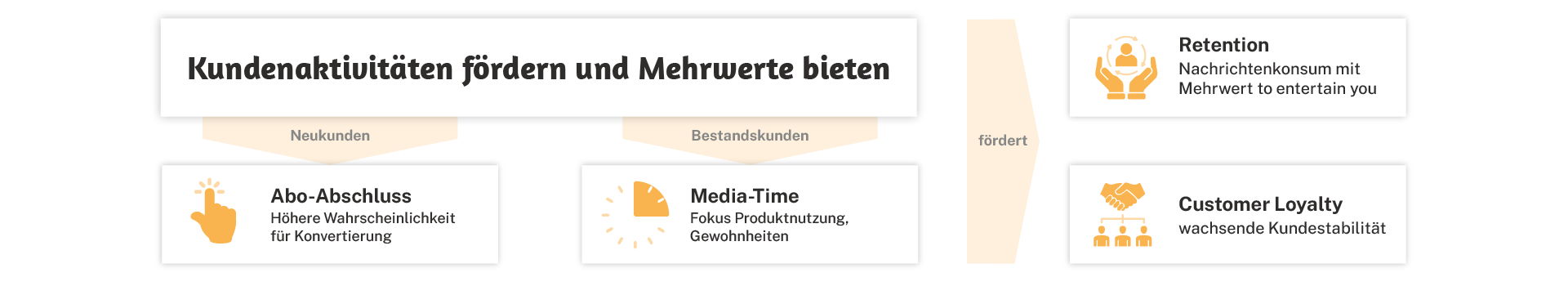 Kundenaktivitäten mit großem Einfluss auf die Bindung und den langfristigen Wert eines Nutzers – sogenannte High Value Actions (HVAs) – spielen in der Customer Journey eine zentrale Rolle. Dazu zählen etwa die Newsletter-Anmeldung im Abo-Funnel oder bei Plus-Abonnenten das Kommentieren und Lesen von Artikeln.